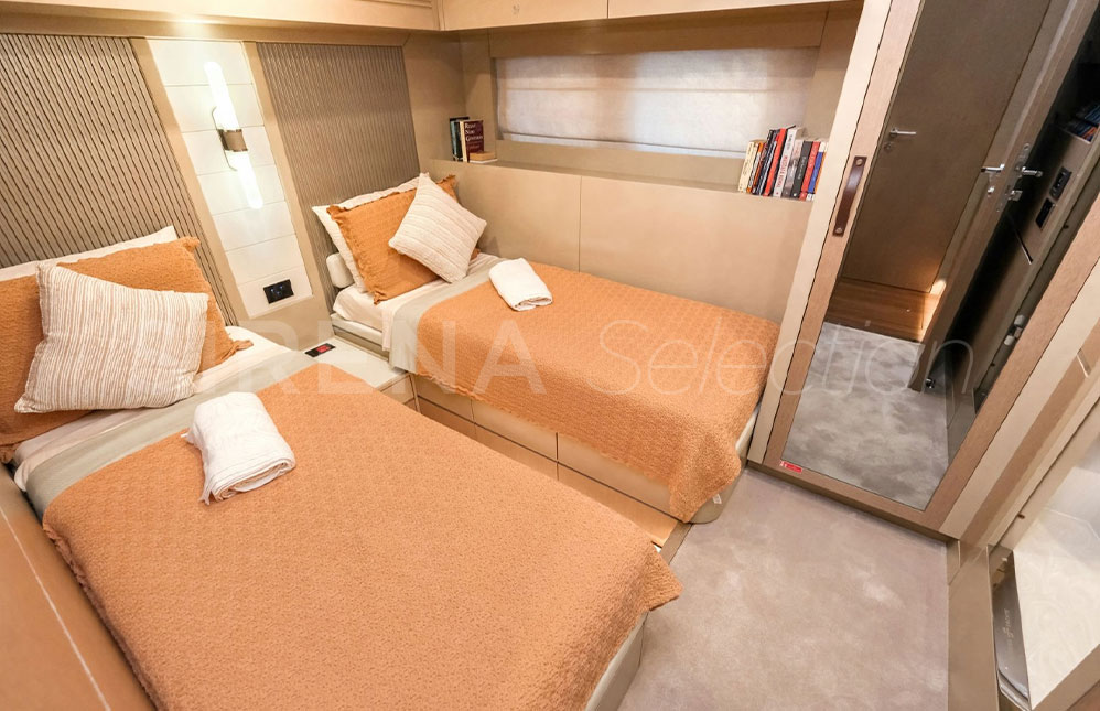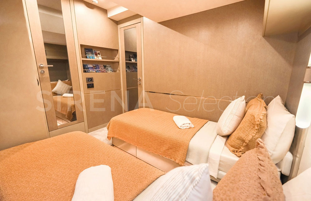 - Mürettebat Alanı | 2 adet tek kişilik yatak ve altlarında depolama alanı, 2 adet gardrop, makine dairesine ulaşım ve banyo