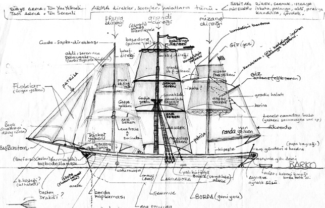 The traditional language of seafaring has created a discourse that echoes the experience of sailing in almost every period. Since it includes the characteristics of land, wind, currents and the sky, it has to establish relations with different branches of science in many subjects, especially location determination. That’s why maritime dictionaries don’t just contain definitions of meaning in different languages. Each term can be a word that someone else needs and has no equivalent in their own language. It can be seen as an area of wisdom, containing endless details from the hull to the lantern light, from navigation to the crew. How the maritime language was formed, the etymological roots of the terms, the similarities in different languages, and the ties with ancient cultures create a separate world of meaning.