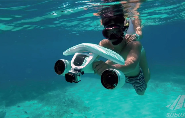 This twin-propeller underwater scooter is ultra-lightweight and easy to carry, providing extra mobility and speed even for those with the highest level of swimming skills. When released, it also has a non-sinking feature.